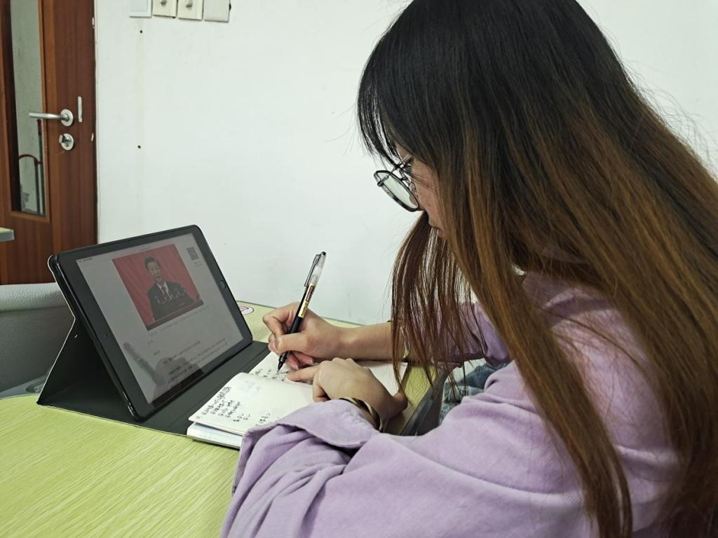 党员陈若雨提到:作为学生党员,我们应该为国家的强大而自豪,清楚自身所肩负的责任和使命,将理论知识落实于工作实践中去,争做新时代有为青年,在新征程中,激昂青春之志,奉献青春之力,不忘初心,砥砺前行,谱写更加壮美的青春之歌。