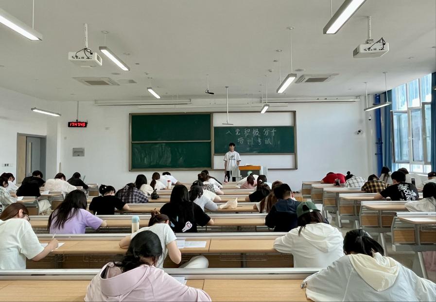 为检验入党积极分子的学习培训情况,5月27日晚在淄公南楼A303教室进行入党积极分子考试。考试期间,考场秩序井然,纪律良好。学员们认真作答,严格遵守考场纪律,展现了良好的精神风貌。本次结课考试不仅是对学员们学习成果的一次检验,更是提高学员政治觉悟、储备党的后备力量的重要途径。