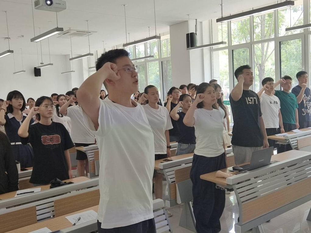 活动伊始,全体学生党员庄严地重温了入党誓词,铿锵有力的誓言回荡在会议室中,展现了党员们的坚定信念和对党的无限忠诚。随后,刘文娟老师强调,青年党员在新时代要敢担当,有作为,教育学生党员要贯彻明纪守规的廉洁自律意识,在未来的学习和工作中以实际行动践行党的宗旨,做一名合格的共产党员,为实现中华民族伟大复兴的中国梦贡献青春力量。