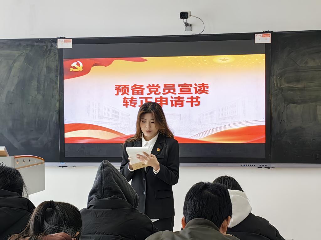 为进一步加强党员队伍建设,增强党员队伍的生机和活力,落实党支部发展党员工作,为党的事业增添新的活力和动力。2024年12月12日,经济管理学院学生第二党支部在文法西楼A312召开预备党员转正大会,会议主要讨论了关于任悦,张一鸣等十一名名预备党员同志转正的相关事宜。本次预备党员转正大会由我院学生第二党支部副书记张娟主持,全体学生党员参加此次大会。