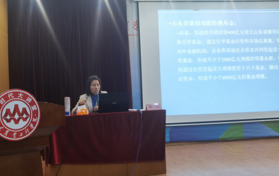 在讲座中张教授即介绍了山东省新旧动能转换总的实施方案,又介绍了具体的财政政策、金融政策的落实,既有理论讲解又有具体案例,使老师和学生们收获颇多。
