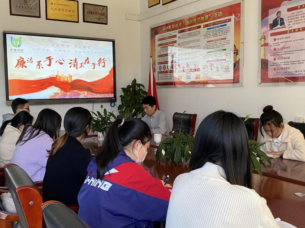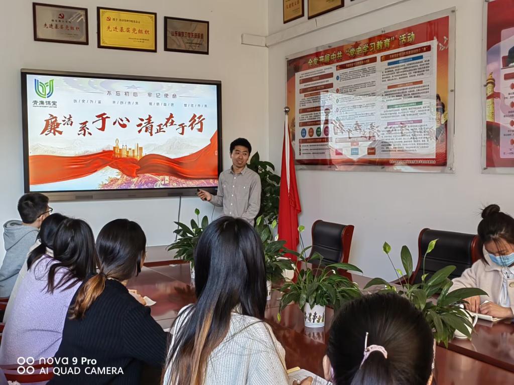 2022年11月17日上午,经济管理学院在党建活动室组织开展“青廉课堂”,由学院办公室副主任、学生第一党支部宣传统战委员靖荣文老师主讲。