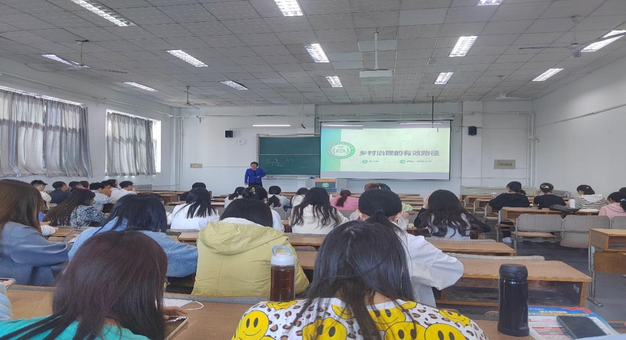 2023年4月17、18日,经济管理学院李百秀教授分别在济南1号教学楼501和齐河校区2号教学楼601为200多名同学作《乡村治理的有效途径》讲座。