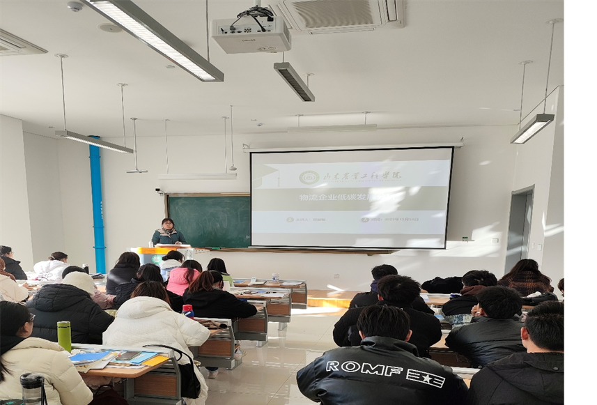 2023年12月21日上午,物流教研室郑爱敏老师在淄博校区文法西楼B105教室做了题为《物流企业低碳发展分析》的学术讲座,21级物流工程专业的学生聆听了本次讲座。