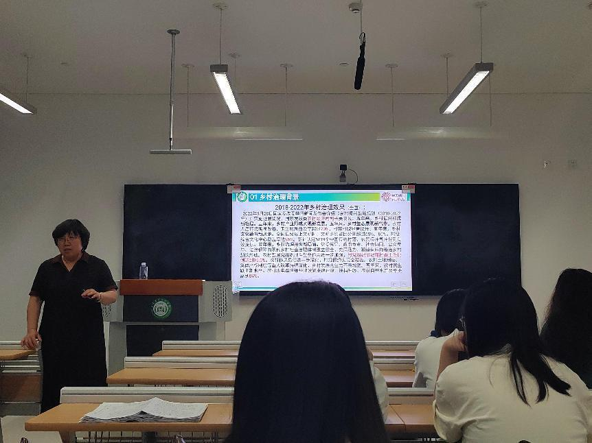 李百秀从乡村振兴目标要求谈起乡村基层治理是乡村振兴的根基。她向同学们详细解读了《关于加强和改进乡村治理的指导意见》中提出的2个总要求,17项具体任务和4项组织实施原则;介绍了《关于加强和改进乡村治理的指导意见》20条的具体内容。随后,她从党建引领、治理重点、主体内生力、外来资源助力等方面与在座的各位同学探讨了乡村基层治理的有效路径并分享了乡村基层治理典型案例。