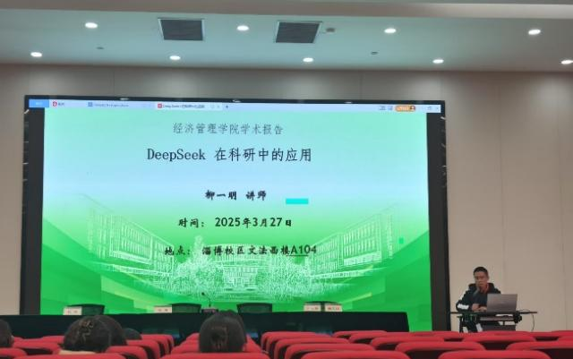 2025年3月27日下午,经济管理学院专任教师柳一明在淄博校区文法西楼A104作了题为《DeepSeek在科研中的应用》专题讲座,经济管理学院以及商学院的部分教师聆听了本次讲座。