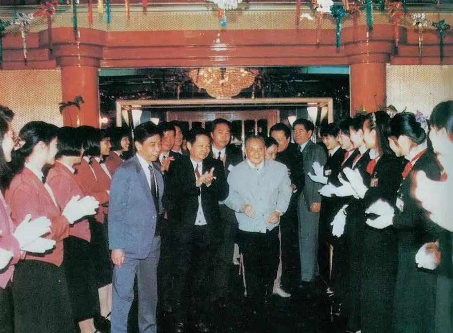 1992年1月20日,邓小平来到深圳国贸大厦,受到大厦员工的热烈欢迎。