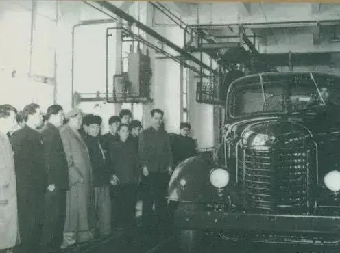 1958年2月13日,毛泽东北上长春,来到长春汽车制造厂。这是毛泽东在注视着从总装配线下来的解放牌汽车。