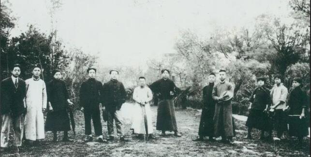 1920年5月8日,新民学会部分会员在上海半淞园合影。左七为毛泽东。