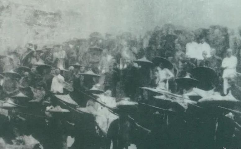 1926年7月9日,国民革命军开始北伐。两天后,北伐军的先头部队叶挺独立团攻占了长沙,然后向武汉进攻。一路上,迅猛发展的农民运动有力地配合了北伐战争。在湖南、江西、湖北,农民运动越来越引人注目。这是支援北伐战争的农民自卫军。