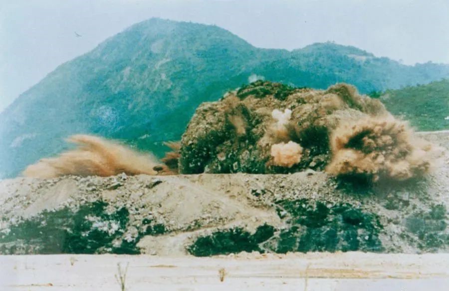 1979年7月20日,深圳蛇口工业区的建设者点燃开山炮时的场面。