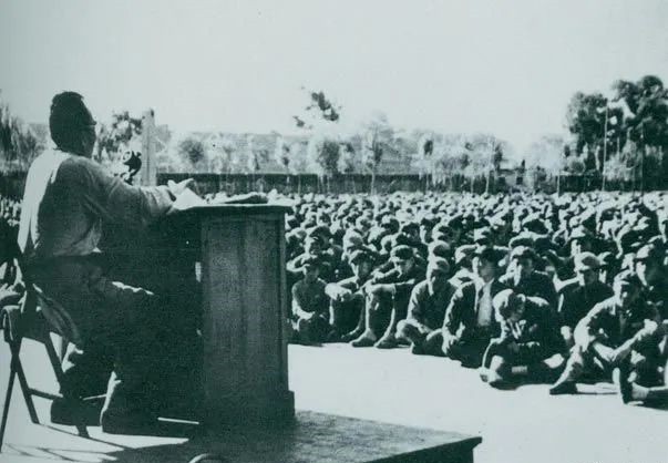 1949年7月,朱德在北平给第四野战军南下工作团讲话。