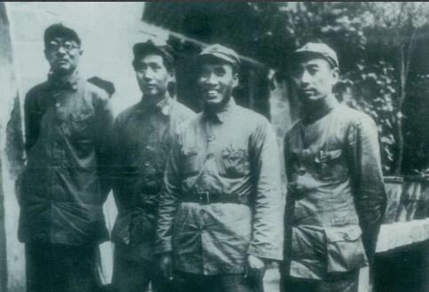 1937年8月22日至25日,中共中央在洛川冯家村举行政治局扩大会议(即洛川会议)。图为毛泽东和朱德、周恩来、林伯渠的合影。