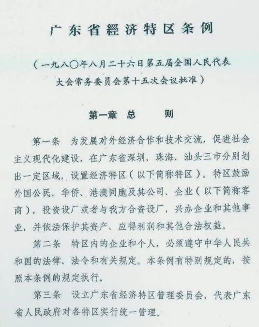 1980年8月26日,第五届全国人大常委会第十五次会议批准《广东省经济特区条例》。