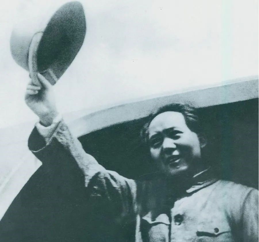 1945年8月28日,毛泽东飞赴重庆时,向前来欢送的延安军民挥手告别。