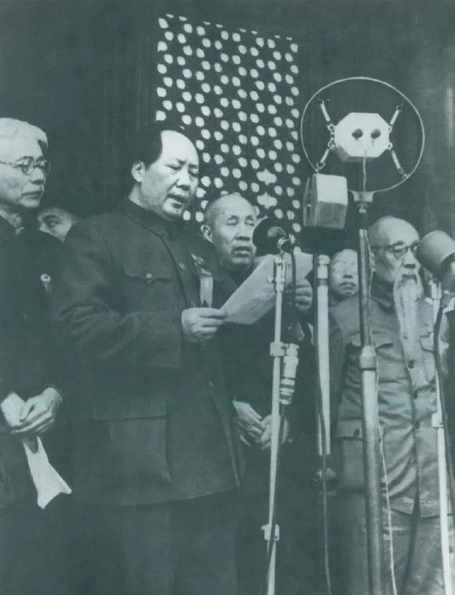 开国大典。1949年10月1日,毛泽东在天安门城楼上庄严宣告:中华人民共和国中央人民政府今天成立了!