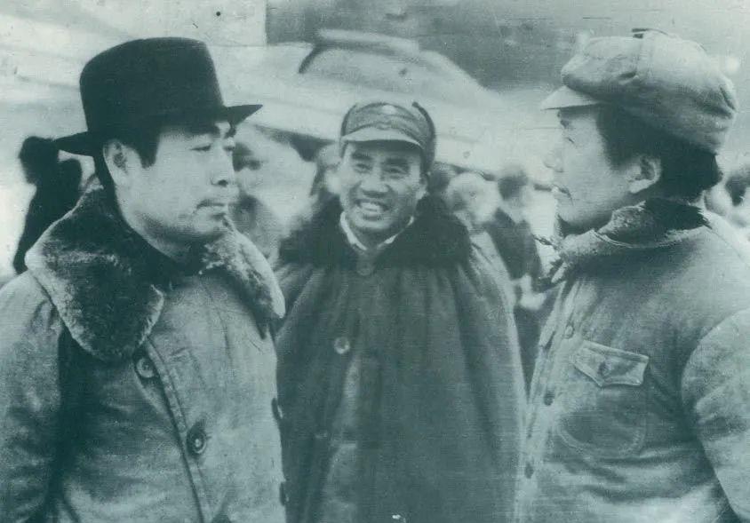 1945年11月11日,毛泽东、朱德赴延安机场迎接从重庆回来的周恩来。
