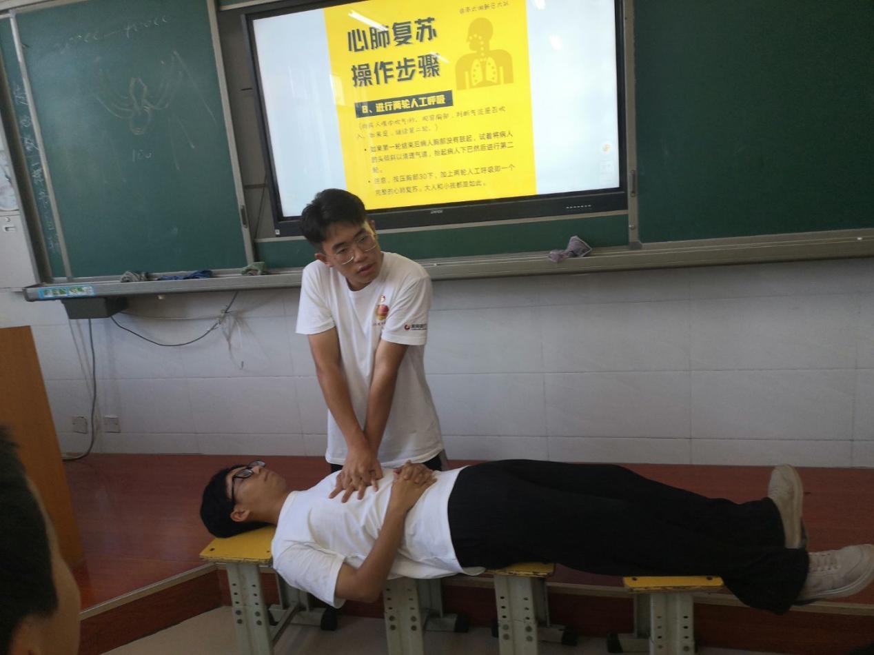 青少年自护教育作为素质教育的一个组成部分,对青少年的健康成长至关重要,因此,在课堂中开展自我保护教育具有重要意义。在自护教育课程中,志愿者首先向孩子们说明什么是急救以及为什么要了解基本的急救常识,让孩子们对急救的概念有初步的了解,又从气道异物梗堵、溺水、中暑、触电、烧烫伤、交通事故和人身意外伤害七个可能出现的紧急情况,分别讲述出现该紧急情况的原因,急救的方法和处理措施,在本次自护教育课程讲解过程中,志愿者亲身示范,向孩子们更直观的展示海姆立克急救法以及心脏复苏急救法。