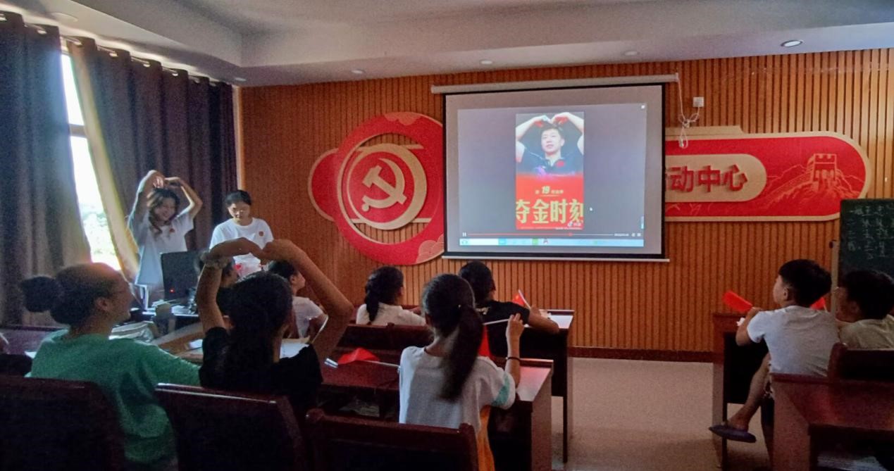 志愿者给孩子们播放了中国队夺金的高燃时刻,让全场的氛围变得火热起来,激发了孩子们为国增光的梦想和爱国之心,增强了民族自信。
