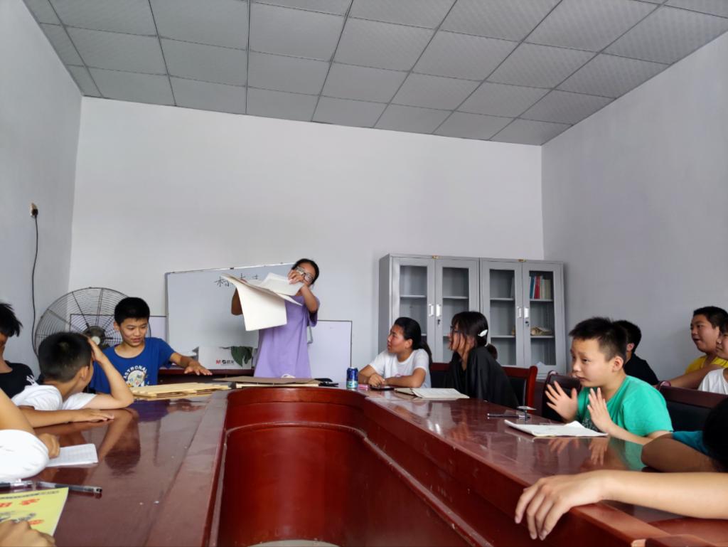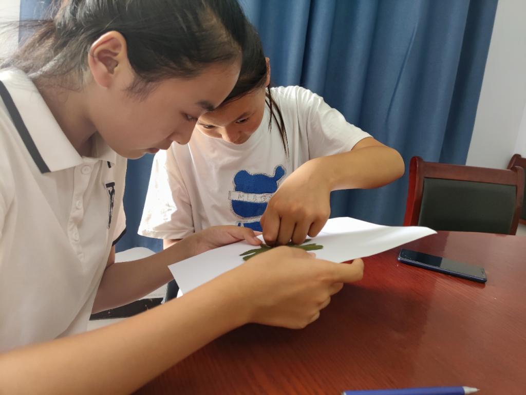 几天后,志愿者与孩子们一起将压制好、已干燥的植物取出,并采取两人一组合作的方式用胶水与细线将植物标本固定到台纸上。小组合作的方式增进了孩子们的合作能力而实践与手工结合的植物标本制作,不仅锻炼了孩子们动手实践能力,还使孩子们对植物有了更加深刻的认识。