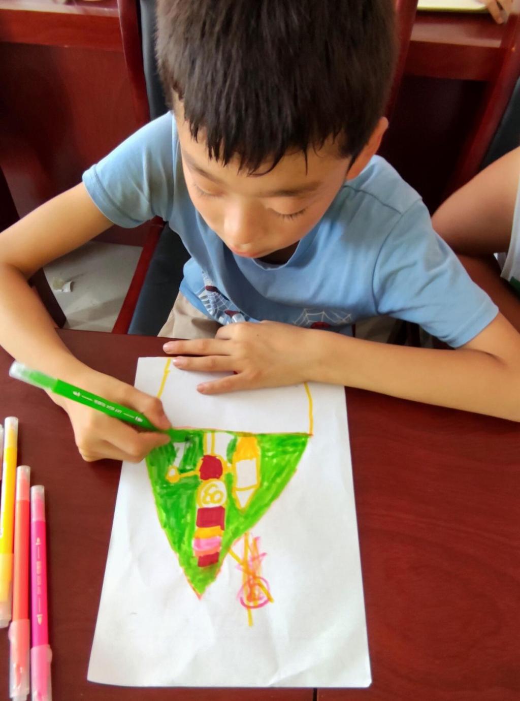 在课程设置上,志愿者结合当地儿童的学习情况、作息规律等,制定了符合身心发展的教学安排。在语文、数学、英语等基础课程之外,开展美术、手工、音乐等素质拓展课,将思政元素融入教学全过程。