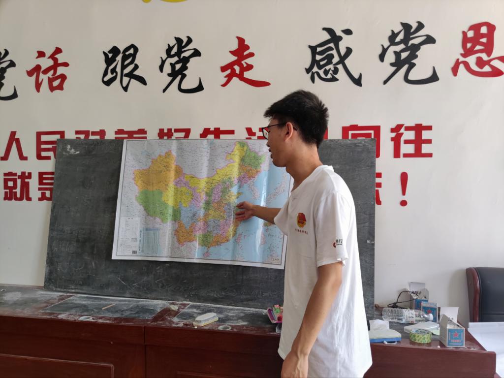 图为志愿者在讲解行政区划分