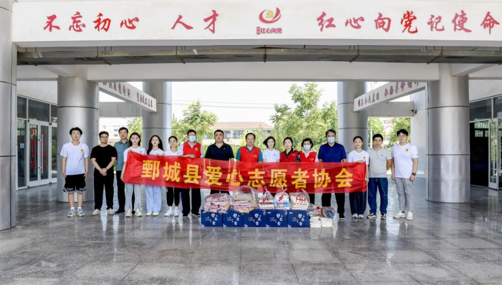 2022年7月21日上午,山东省菏泽市共青团鄄城县委副书记陈溯与鄄城县爱心志愿者协会会长李宏共同为左营镇左南社区小学“小荷学堂”进行爱心捐赠活动,今年会青志协队员参加了捐赠仪式。