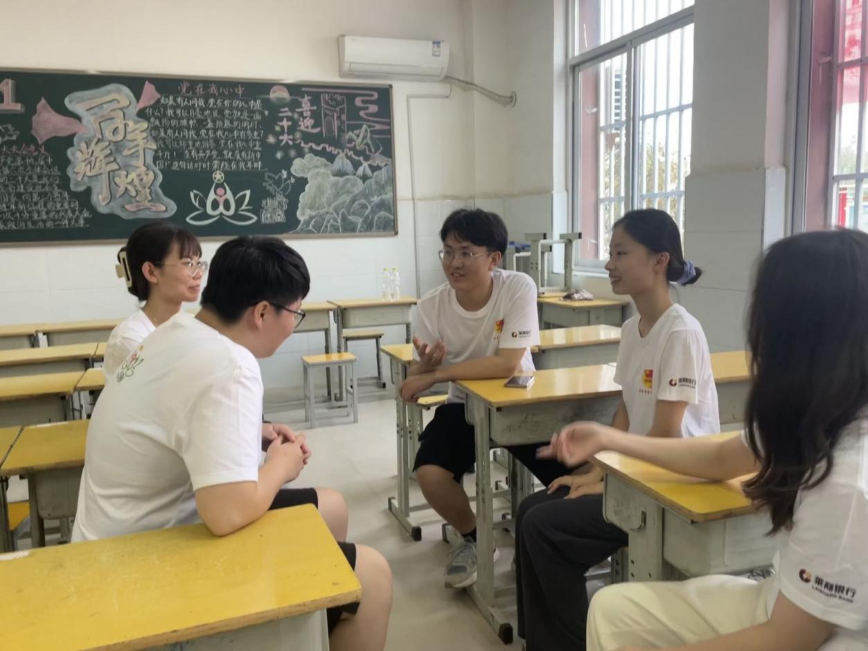 (图为志愿者们在开展支教团会议,讨论家访事宜)