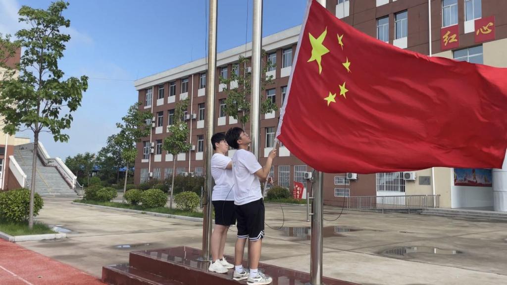 志愿者们在操场举行了隆重而庄严的升国旗仪式