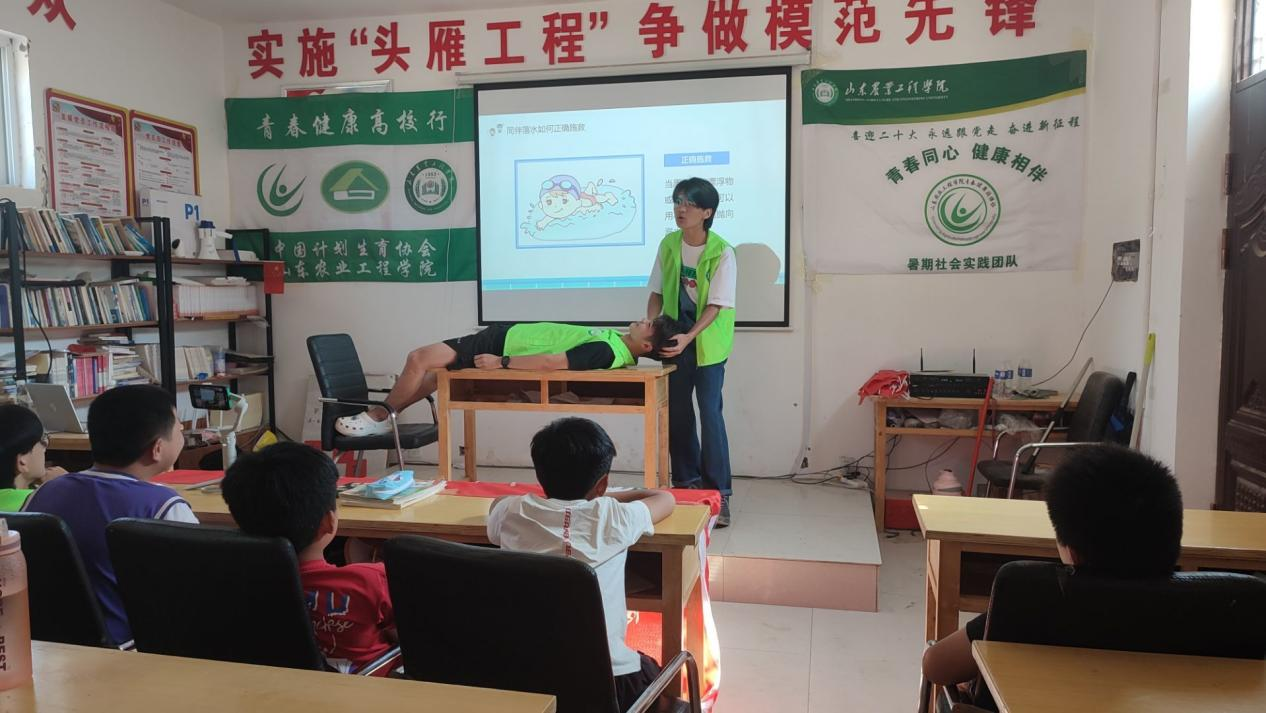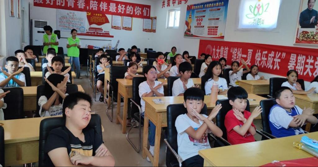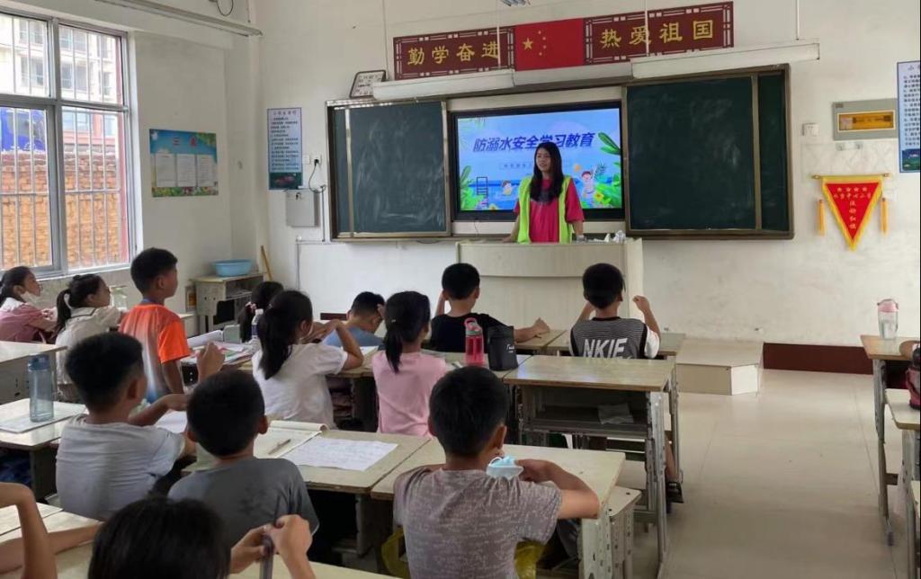 志愿者们特别指出,夏季是中小学生溺水事故的多发季节,防溺水工作是安全工作的重中之重,通过采用游戏问答的方式,让孩子们熟记“防溺水六不要”,并现场询问大家过往的戏水经历,结合实际情况告知同学们切勿独自进入深水区游泳。还通过带领大家制作防溺水手抄报、现场模拟演练急救方法,牢固“生命可贵,安全第一”的意识,提高学生自救自护的意识和能力。