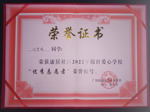 志愿服务源于心,献出爱心在于行。“墨竹班”成员们在实践过程中获得家长和孩子们的认可。其中团队成员刘雪晴荣获“优秀志愿者”称号,她发表感想道:“社会实践从走出校园到服务社会的每一步都在锻炼我们的意志,考验我们的心智,锻炼我们的团队协作能力,在服务社会的同时,自身也受到深刻教育。我们将会一直延续志愿服务精神,做志愿路上的赶路人。”