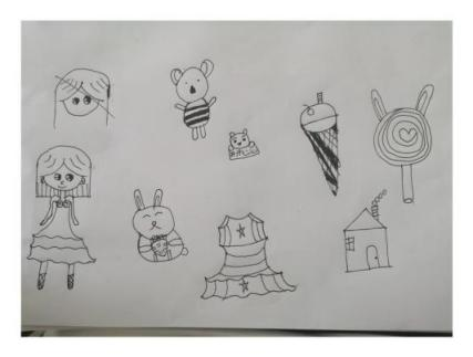 课程讲解结束后,孩子们自由创作,并于下课后提交了自己的绘画作品,用黑白绘画将自己的灵感具象化。灵感美术课程增强了孩子们对于美的表达能力,也大大激发了孩子们对于美术和的兴趣与热情。