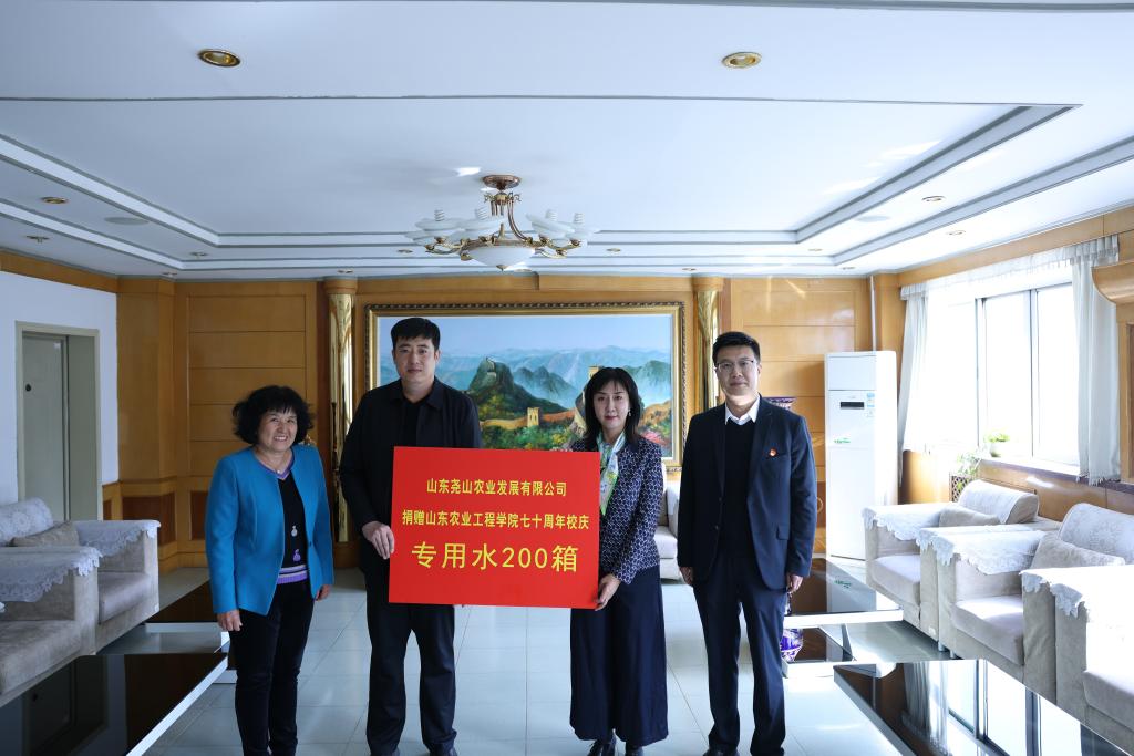 近日,基础课教学部教师徐铭鑫积极联系爱心企业山东尧山农业发展有限公司为今年会捐赠200箱校庆定制天然苏打饮用水。校党委委员、副校长杨玖庆,干部进修学院院长、党委(学院)办公室副主任陈浩,基础课教学部主任闫保英参加捐赠活动。杨玖庆代表学校向爱心企业表示感谢,强调学校的发展和进步离不开广大爱心企业的关爱和帮助。