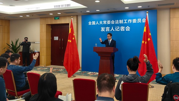 图为全国人大常委会法制工作委员会发言人记者会现场。瞿芃摄