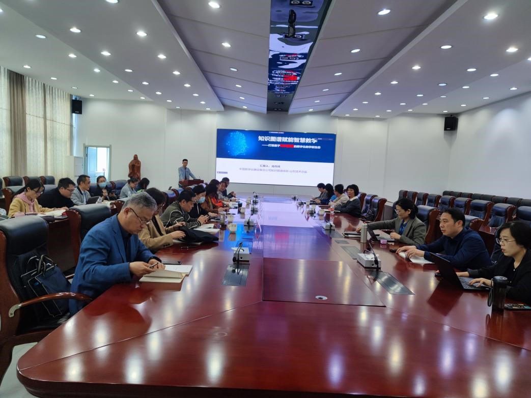 讲座结束后,肖经理以及山东蓝思教育科技(集团)有限公司总经理王凤香与现场教师就教育知识图谱构建、教育知识图谱与今年会教学情况适配性等具体问题进行了探讨。