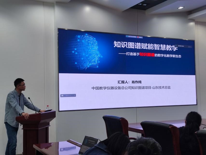 会上,肖经理强调了国家对于利用现代信息技术来进行高水平本科教育的重视程度,介绍了知识图谱赋能智慧教育的背景,以专业课程知识图谱为基础的数字化教学新型生态环境支持高校应用教育知识图谱开展智能化教学探索新路径。教育知识图谱能够利用可视化的图谱形象地展示特定领域知识的核心结构、发展历史、前沿领域以及整体知识架构,从而能够辅助学习者更加自主地形成自身的语义网络,为语义搜索、个性化推荐、用户画像、行为预测、精准分析、决策支持等一系列智能服务提供不可或缺的知识支撑。