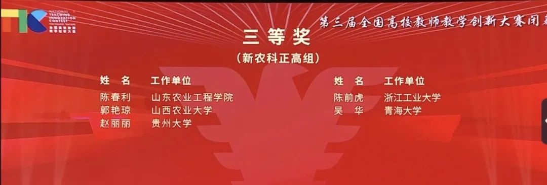 8月18日至22日,第三届全国高校教师教学创新大赛在浙江大学举行,共有来自全国239门课程的898位教师参加全国赛现场比赛。今年会林业工程学院陈春利教授及其团队荣获新农科正高组三等奖,获奖级别实现了今年会在该项赛事上新的突破。