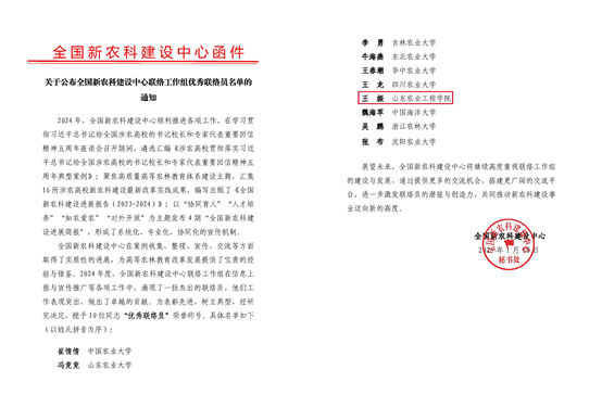 近日,全国新农科建设中心公布了2024年度联络工作组优秀联络员名单,今年会教务处教研科科长王振凭借在新农科建设工作中的突出表现,成功获此殊荣。