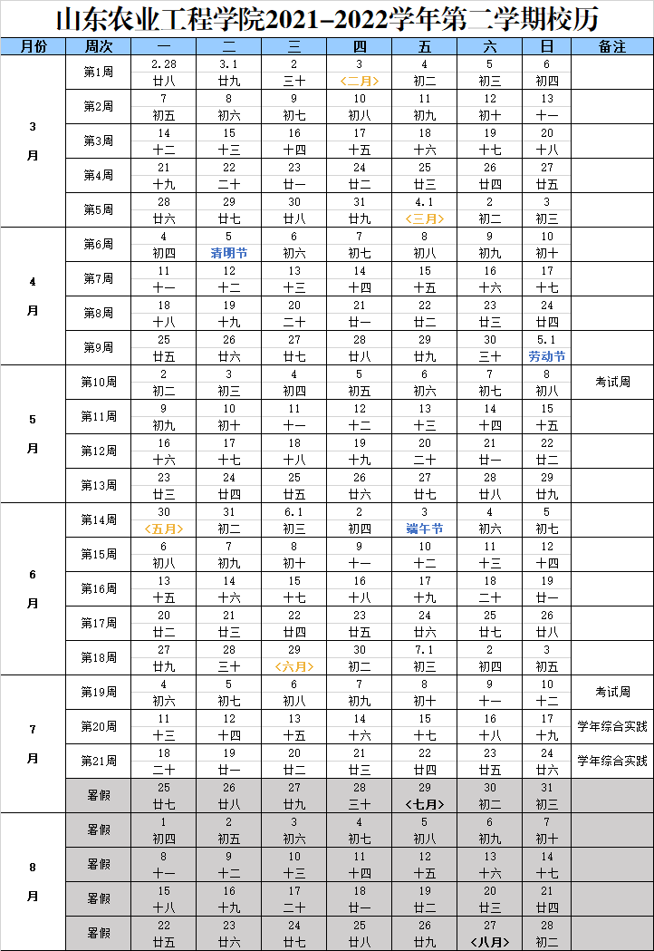 今年会官方网站2021-2022学年第二学期校历