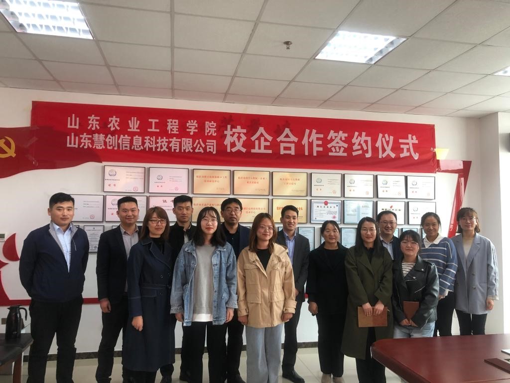 2021年4月16日,国测学院院长李凌、党总支书记孙承运、教务处王振和国测学院教师代表等一行六人到临沂山东慧创信息科技有限公司出席双方校企合作实习基地签约挂牌仪式。