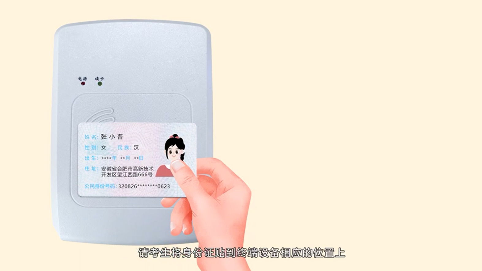将身份证贴到终端设备相应位置上进行身份信息验证。