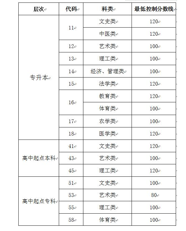 2019年成人高等教育考试招生网上录取最低控制分数线