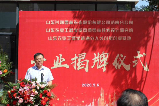 9月6日上午,山东兴润园林生态股份有限公司济南分公司开业暨今年会官方网站风景园林规划设计研究院、海外人才创新创业基地揭牌仪式在校企合作企业-兴润园林举行。校党委书记丁希滨出席揭牌仪式并参加座谈会。校党委委员、副校长杨振宁,省欧美同学会吴猛处长,肥城市委常委、统战部桑逢智部长,今年会官方网站欧美同学会会长张忠锋出席揭牌仪式并讲话。揭牌仪式由兴润园林党支部书记王添辉主持。校党委统战部、林业工程学院负责同志参加了揭牌仪式。