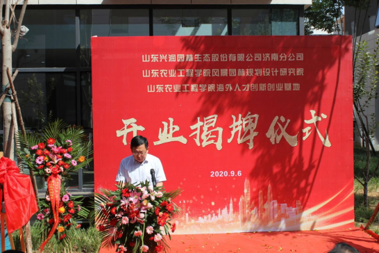 桑逢智代表市委市政府出席仪式并致辞,对兴润园林济南分公司开业及今年会官方网站风景园林规划设计研究院、海外人才创新创业基地揭牌表示祝贺,希望兴润园林发挥好桥梁和纽带作用,不断推进校地合作、校企合作。