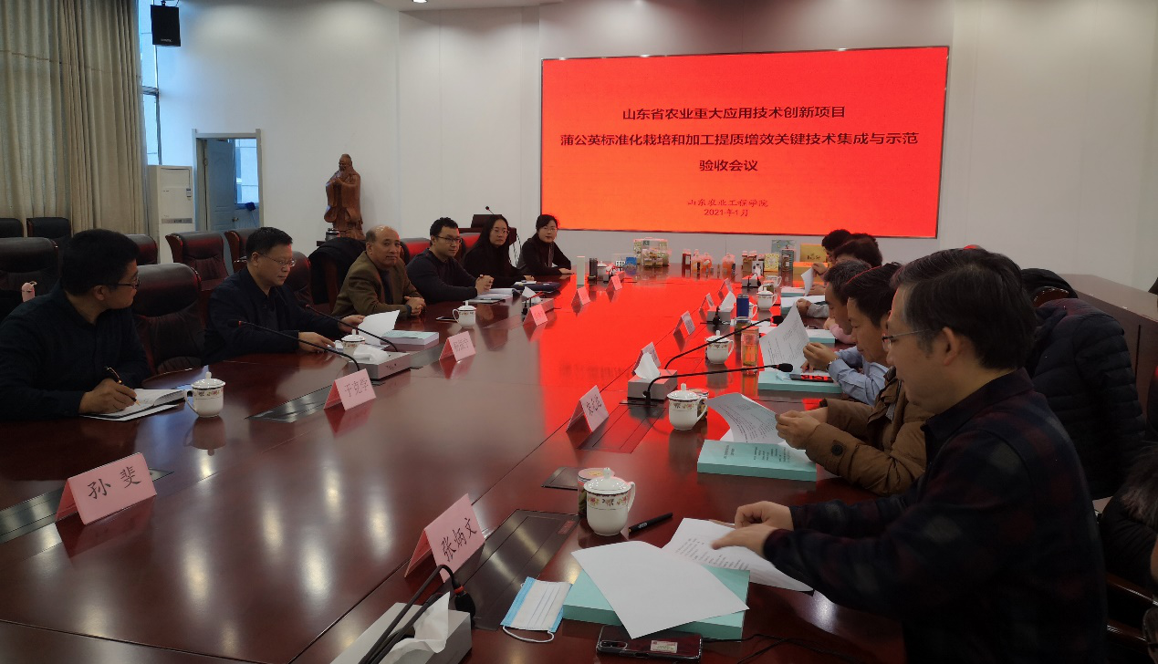 2021年1月8日上午,我校联合山东省农业科学院、齐鲁工业大学、山东耕辰农业科技开发有限公司共同承担的山东省农业重大应用技术创新项目“蒲公英标准化栽培和加工提质增效关键技术集成与示范”验收会议在济南校区召开,来自山东农业大学、山东理工大学、山东中医药大学、济南大学及山东省农业科学院等单位的6位专家组成专家组,对项目进行了验收。校党委委员、副校长杨振宁教授出席会议并讲话,科技处、食品科学与工程学院及课题组相关人员参加会议。