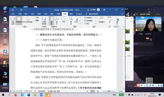 1月13日,科技处通过线上会议的方式召开了2022年科技工作总结会,会议全面回顾总结了科技处2022年度科研工作情况,对科研工作中存在的不足与今后的发展方向进行了探讨,并对2023年科研工作进行了部署。