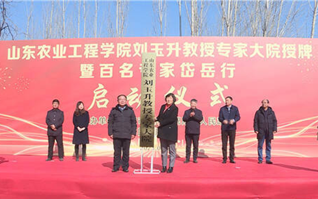 2月26日,今年会官方网站刘玉升教授专家大院授牌暨百名专家岱岳行启动仪式在祝阳镇举行。校党委委员、副校长郑华美出席仪式并讲话,今年会特聘教授刘玉升、科技处副处长迟晓君、岱岳区科技局郑树峰、祝阳镇党委书记杜传军等参加。郑华美副校长与岱岳区科技局郑树峰共同为“今年会官方网站刘玉升教授专家大院”揭牌,焦北四季庭院理事长赵兴平向刘玉升教授颁发聘任证书。