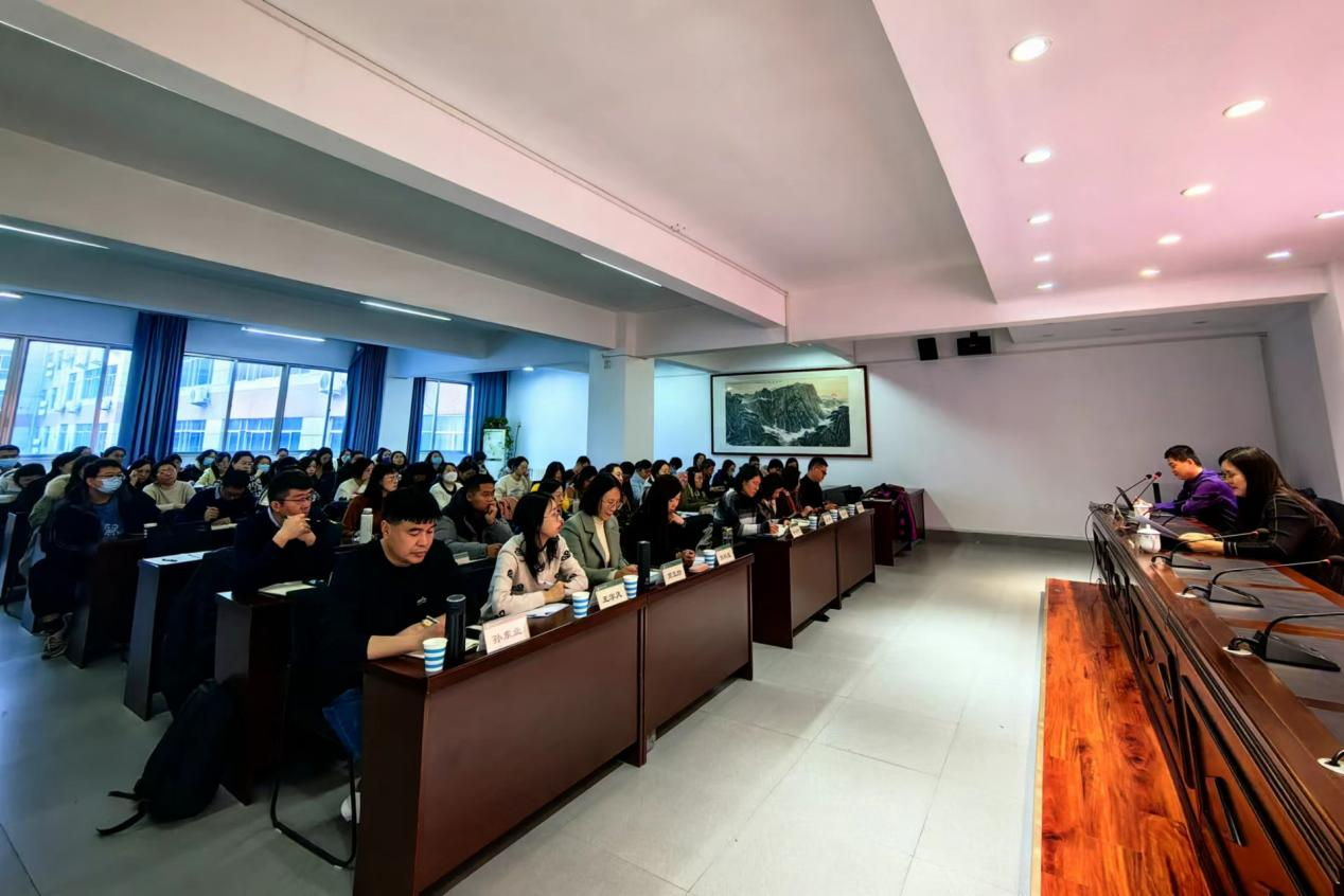 冯永刚教授首先从科研意识、课题选题、设计论证、基础保障等方面进行了详细讲解,然后对申报书的撰写,从选题依据、研究内容、思路方法、重点难点等方面进行解读,结合自己的申报经验和心得,分析各类课题的申报特点和注意事项。最后,冯永刚教授与在场教师针对课题的撰写和申报进行了热烈的交流探讨,并为其提出具体建议。冯永刚教授的讲解内容丰富,言简意赅,大家受益匪浅。