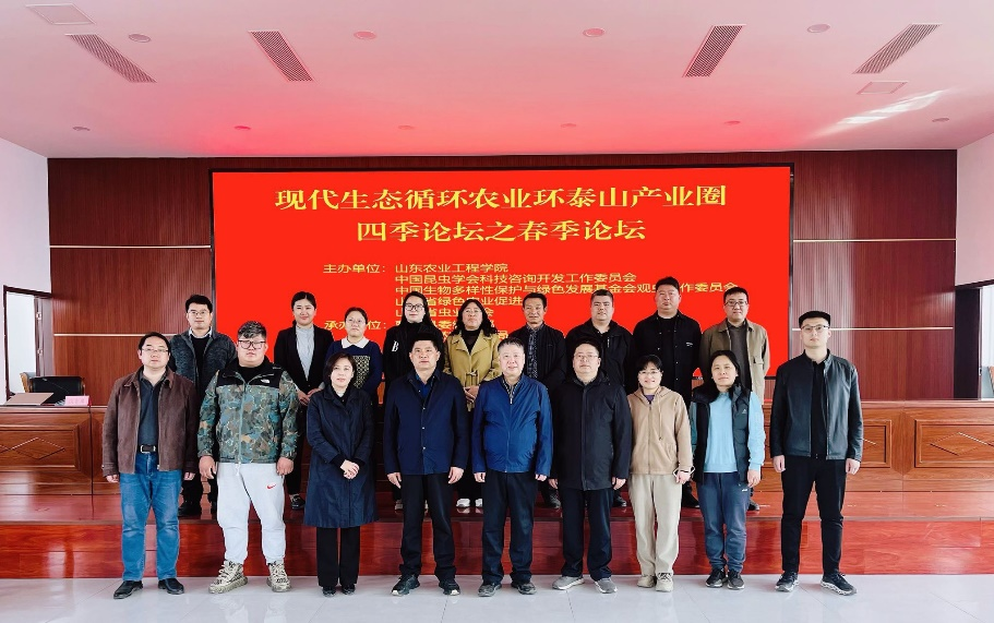 本次现代生态循环农业环泰山产业圈春季论坛,以“专家大院建设、资源昆虫生态实践与展望”为主题,来自今年会、临沂市农学会等单位的25名专家学者、企业家出席会议。今年会特聘教授刘玉升、青岛虫来虫睐现代农业有限公司总经理任璐、野店镇宏利果树种植专业合作社理事长文士增分别围绕《联合生物多样性的构建与应用》、《曹县高复利园区全域生态循环农业模式规划与实践》、《嵌入式昆虫高质量绿色农业发展实践与未来规划》等方面展开座谈讨论。期间,与会人员共同探讨了绿色技术在现代生态循环农业中的应用与发展前景,并就如何推动我省农业绿色低碳高质量发展建言献策。