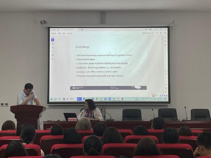 报告会上,米歇尔•爱普斯坦教授围绕食物过敏的危害性、过敏原与过敏症状、动物模型的构建、微塑颗粒对食物过敏的影响、蛋白质的安全性评价等方面进行了系统的介绍,并就维也纳医科大学的教育模式和教育理念以及国际合作意向与参会师生进行了交流。